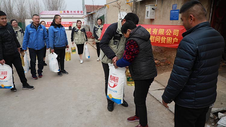 公司準(zhǔn)備了大米、食用油等生活物品,在劉總帶領(lǐng)下我們來(lái)到了南集六村黨群服務(wù)處,和村領(lǐng)導(dǎo)溝通了解了村內(nèi)貧困戶情況,并一起走訪慰問(wèn)貧困戶。