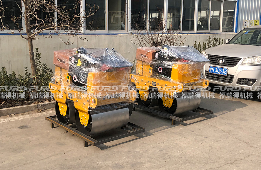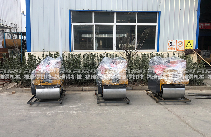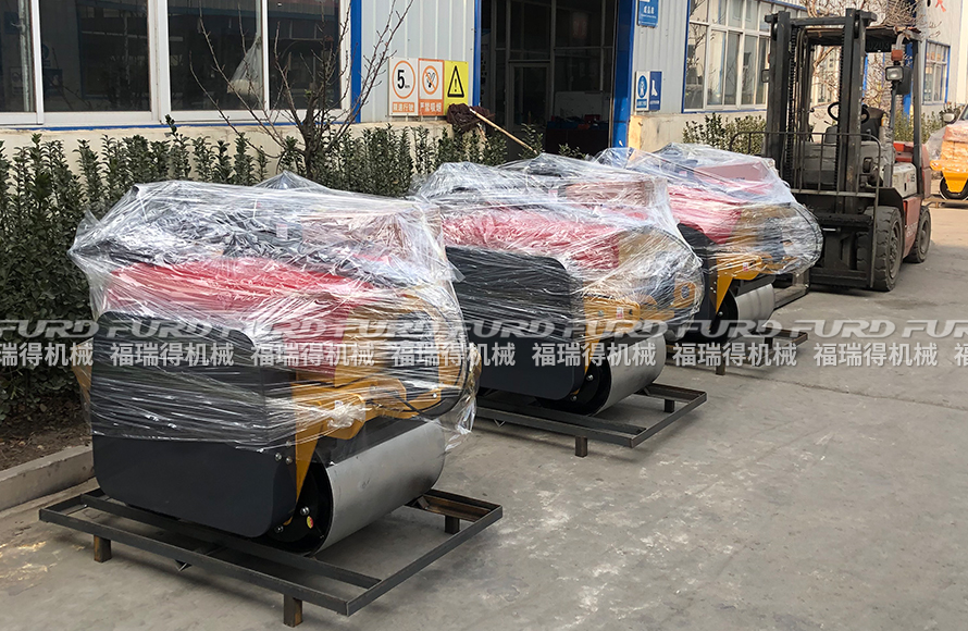 1月26日 福瑞得機械5臺手扶雙輪壓路機打包裝箱出口南非。