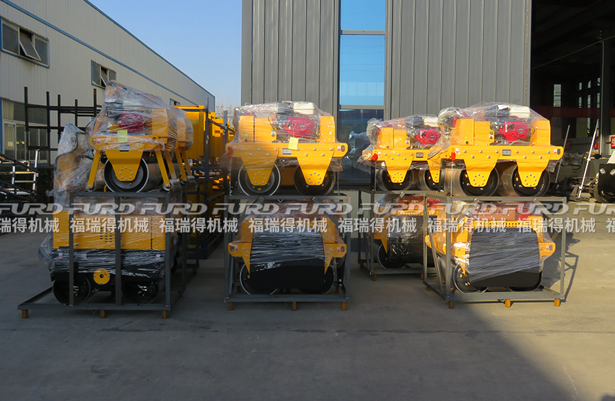 福瑞得機(jī)械13臺小型路面壓路機(jī)裝車出口新加坡