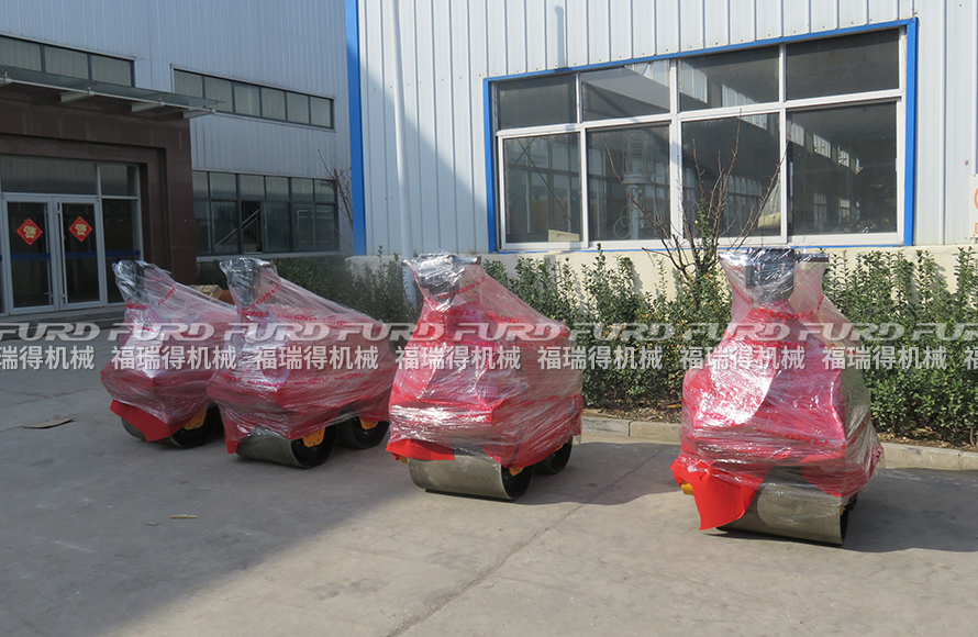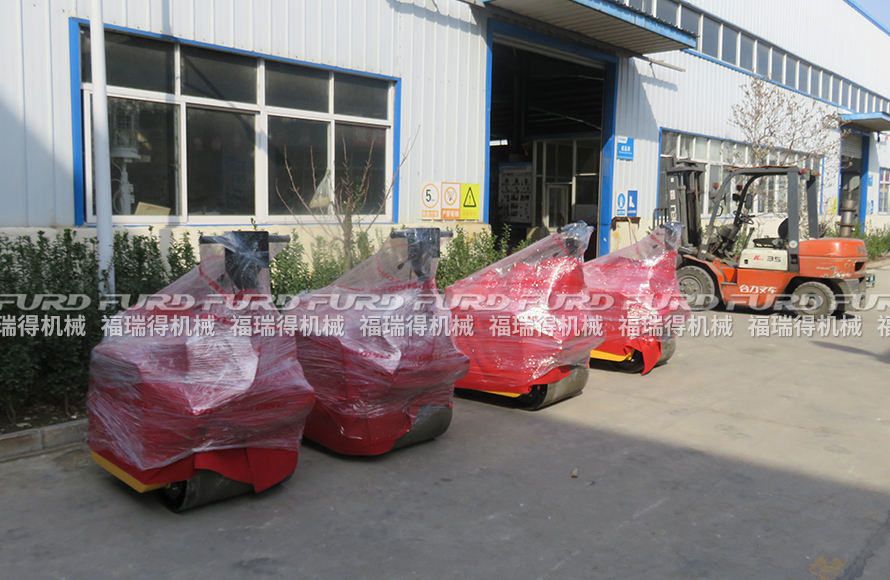 3月12日,福瑞得機(jī)械將廣州客戶一周前訂購的4臺(tái)手扶雙輪壓路機(jī)打包發(fā)出。