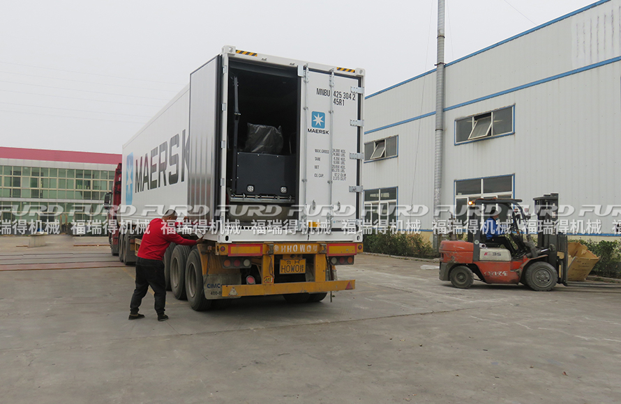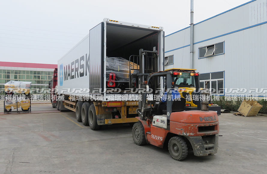 3月19日,福瑞得機(jī)械裝柜出口一批座駕壓路機(jī)。