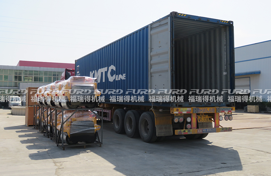 福瑞得機(jī)械一批壓路機(jī)打包裝柜出口印度