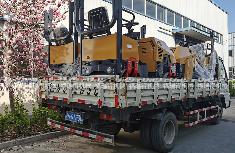 4月23日,福瑞得機(jī)械將日照客戶十天前訂購的7臺1噸全液壓振動壓路機(jī)裝車發(fā)走。