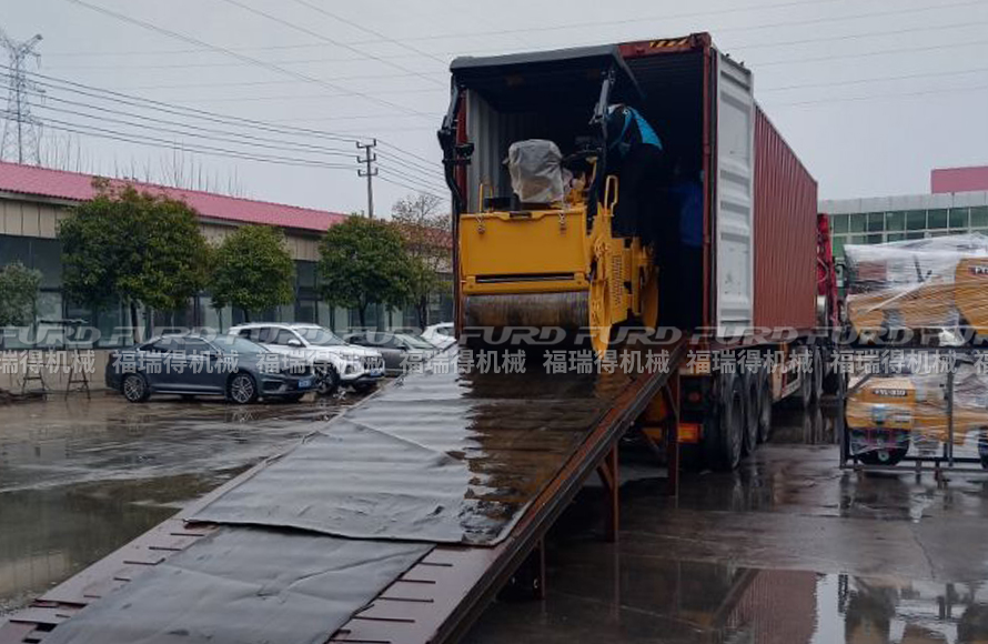 3月25日,福瑞得機械一批小型壓路機裝箱出口墨西哥。