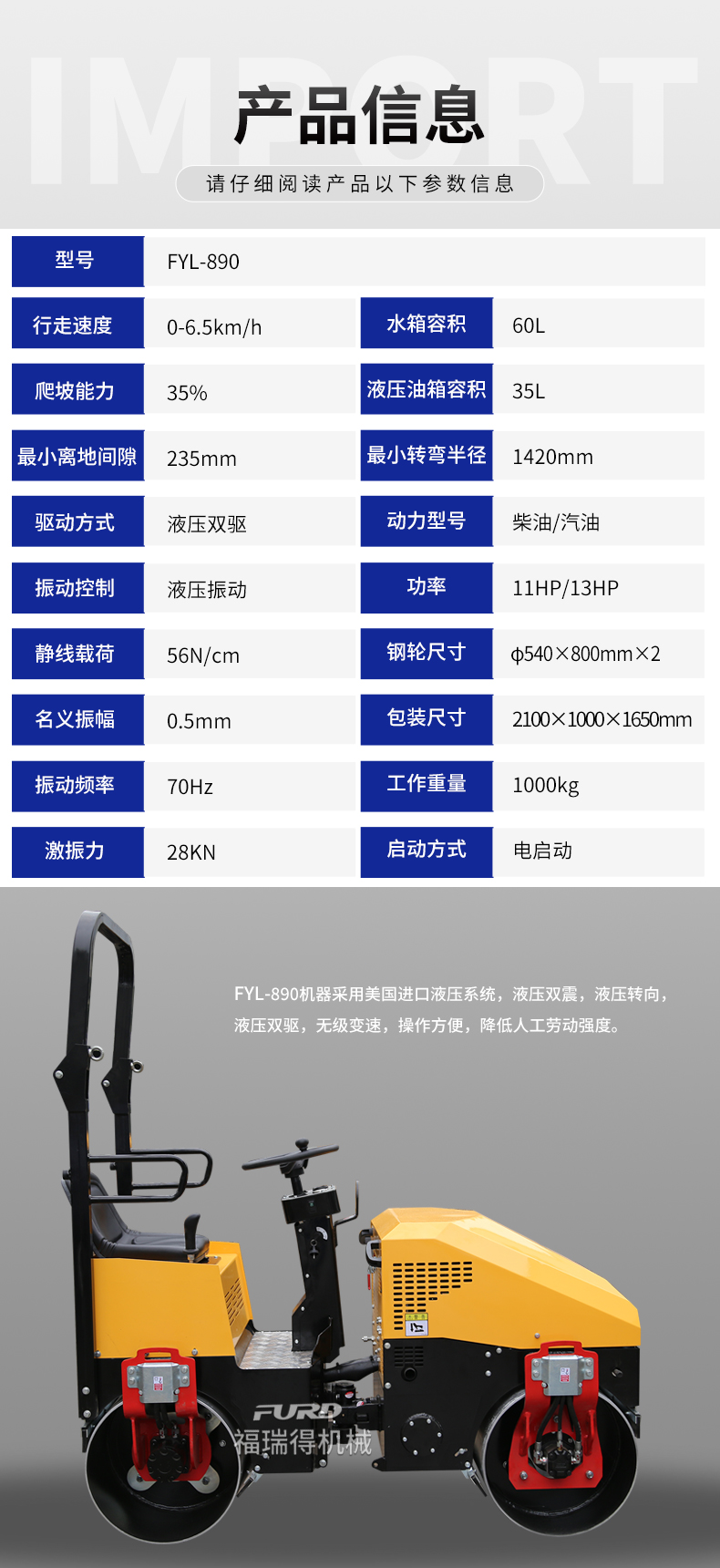 FYL-890 小型全液壓振動(dòng)壓路機(jī)