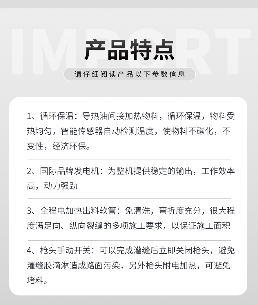 瀝青灌縫機,使用原料為瀝青灌縫膠,主要用于瀝青路面不規(guī)則裂縫、混凝土路面、橋梁伸縮縫、上下水道、煤氣管埋設(shè)機鋪裝路面的連結(jié)處防水處理,而專門設(shè)計、生產(chǎn)的瀝青補灌縫專業(yè)機械。