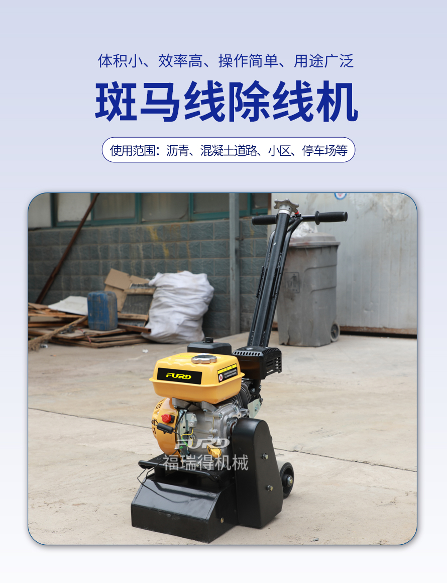 特點:體積小、重量輕、機動靈活、工作效率高、操作簡單。 適應(yīng)范圍:主要用于瀝青道路、混凝土道路、物業(yè)小區(qū)、機場、停車場等地的標線清除。