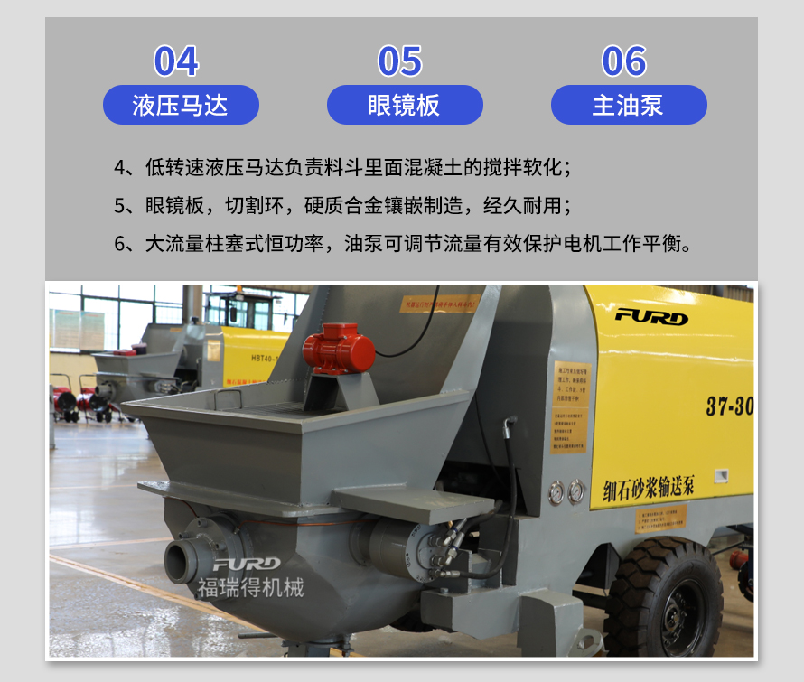 產(chǎn)品介紹: 1,大流量 采用加粗料缸,讓機械每一次循環(huán)出料多20% 2,效率高 移動便捷全部采用快接式管道卡,提高工作效率 3,便捷 本機可遠程遙控,操作不受地點限制,更加人性化 產(chǎn)品用途: 坡道灌漿,水平地面,隧道澆筑,模