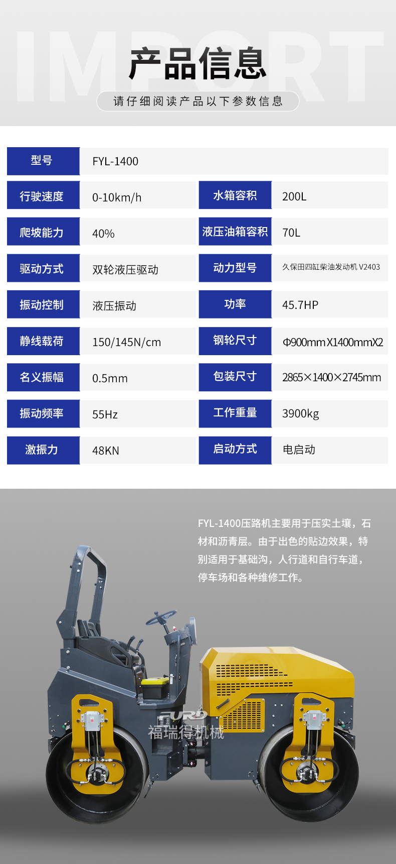 FYL-1400 4噸全液壓座駕雙鋼輪壓路機